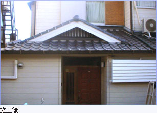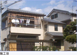 | 〔お客様の感想〕 いろいろと仕事が増えた割に工事費は安かったと思う。 家の外観が変わり見違えた。 雨漏りの不安も無くなり助かりました。 |
